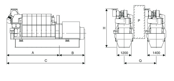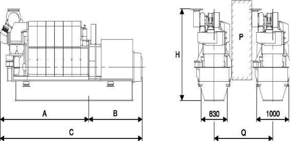 P:機組間的通道,寬600 mm,高2000 mmQ:機組間的最短距離:1800 mm