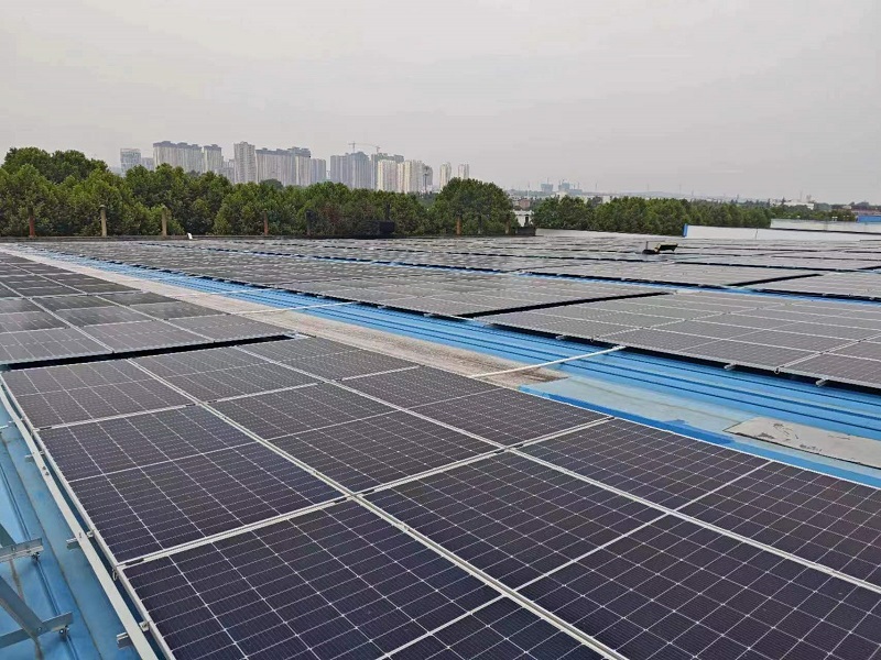 根據廠區屋頂承重情況,該項目在設計階段就承重結構、安裝方式、施工及運維等方面做了詳細規劃,共安裝一萬余塊高效單晶硅光伏板,總面積達到5.79萬平方米。項目投入使用后,預計年發電量約582萬kW?h,年節約標準煤約1750噸,年節約用電成本約77萬元。同時,相對于傳統發電模式,可減排燃煤所產生的二氧化硫約0.48噸,減排氮氧化物約0.77噸,減排溫室效應氣體二氧化碳約 44796噸,減排煙塵約0.1噸。